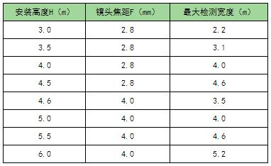 1) 根據(jù)現(xiàn)場安裝高度進行鏡頭焦距選型,3.0-4.5米需選擇2.8mm型號,4.5-6.0米需選擇4.0mm型號。